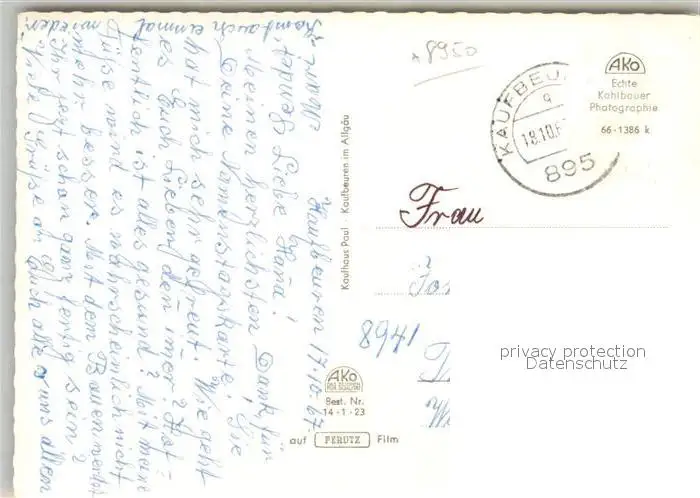 Kaufbeuren Bahnhofstr Jordananlage Sedanstr Fuenfknopfturm St Blasiuskirche Neugablonz Schwimmbad Kreszentia Kloster Neptunbrunnen Pfarrkirche St Martin Kaufbeuren postalisch gelaufen 1967 Erhaltung siehe scans [WerneD78] WernPID7