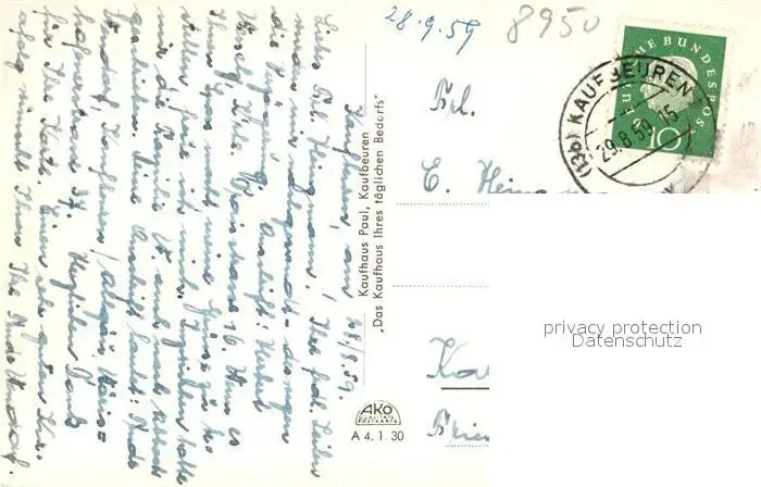 Kaufbeuren Kirche und Schloss Kaufbeuren postalisch gelaufen 1959 Erhaltung siehe scans [WerneD78] WernPID7