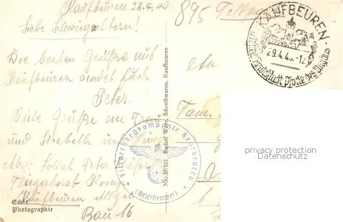 Kaufbeuren Panorama Kaufbeuren postalisch gelaufen 1940 Feldpost - Stempel Erhaltung siehe scans [WerneD78] Feldpost - Stempel WernPID7