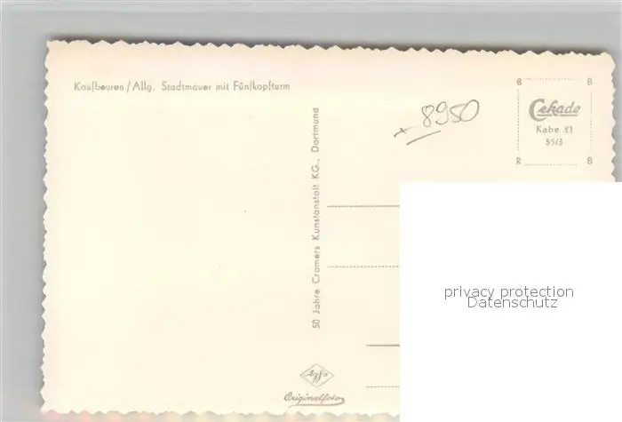 Kaufbeuren Stadtmauer mit Fuenfknopfturm Kaufbeuren postalisch nicht gelaufen 1921-1965 Erhaltung siehe scans [WerneD78] WernPID7