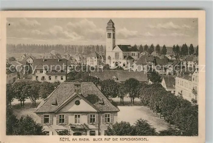 AK / Ansichtskarte Kehl_Rhein Blick auf die Komisionsinsel Kirche Kehl_Rhein