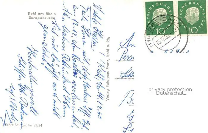 Kehl_Rhein Europabruecke Kehl_Rhein postalisch gelaufen 1960 Erhaltung siehe scans [KathaD81] Kathoren