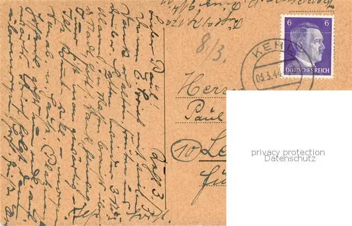 Kehl_Rhein Evangelische Kirche mit Kriegerdenkmal Kehl_Rhein postalisch gelaufen 1944 Erhaltung siehe scans [FriedD77] Frierer