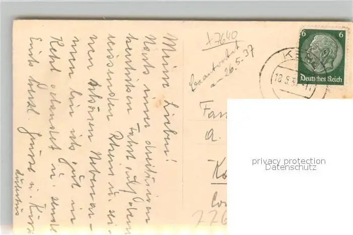 Kehl_Rhein Kirche mit Hindenburg-Anlagen Kehl_Rhein postalisch gelaufen 1937 Erhaltung siehe scans [LiesaD40] LiesID40