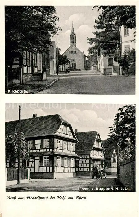 Kehl_Rhein Ortsmotiv mit Kirche Gasthof zum Rappen Kehl_Rhein postalisch nicht gelaufen 1921-1965 Erhaltung siehe scans [FriedD77] Frierer
