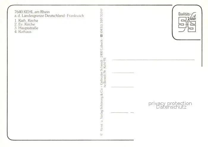 Kehl_Rhein Rathaus Katholische Kirche Hauptstrasse Kehl_Rhein postalisch nicht gelaufen nach 1965 Erhaltung siehe scans [NatalD47] NataID47