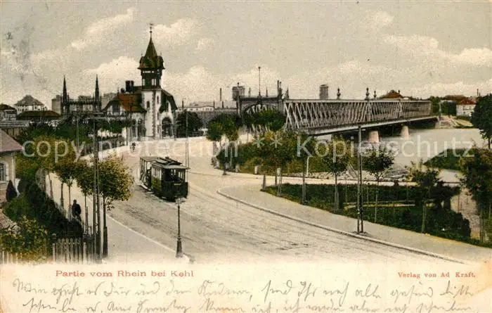 AK / Ansichtskarte Kehl_Rhein Rheinbruecke Strassenbahn Kehl_Rhein