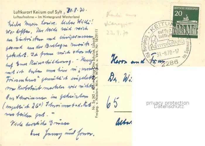 Keitum_Sylt Luftkurort mit Westerland im Hintergrund Fliegeraufnahme Keitum Sylt postalisch gelaufen 1970 Erhaltung siehe scans [FriedD77] Frierer