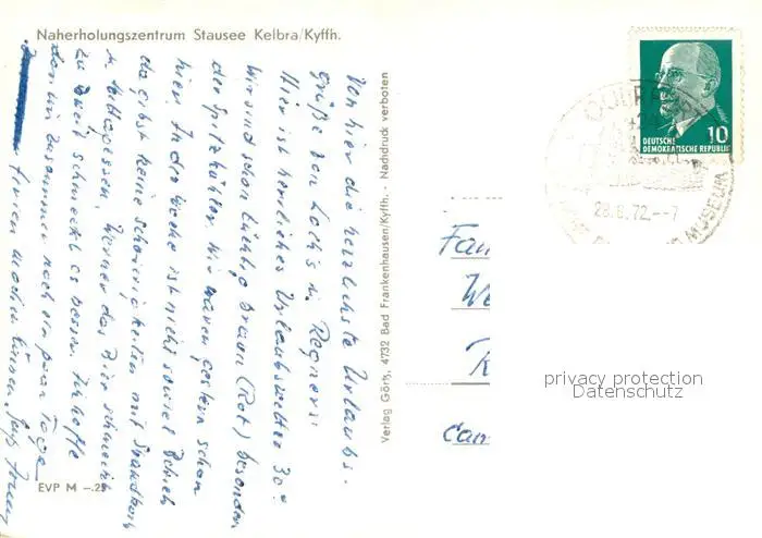 Kelbra_Kyffhaeuser Naherholungszentrum Stausee Kelbra Kyffhaeuser postalisch gelaufen 1972 Erhaltung siehe scans [FriedD77] Frierer