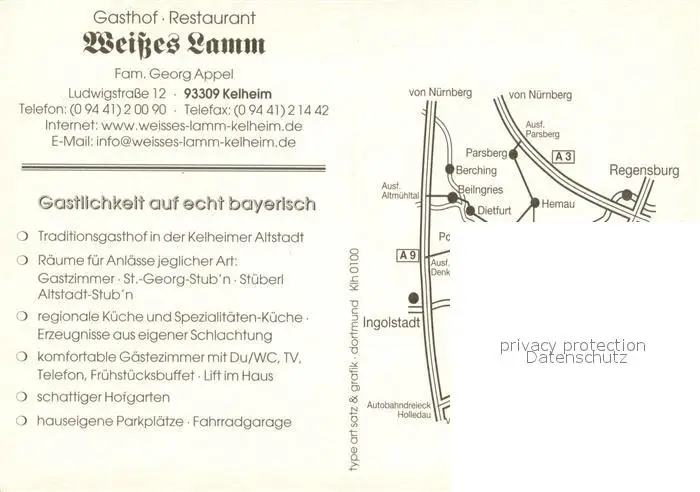 Kelheim Befreiungshalle Donaudurchbruch Gasthof Weisses Lamm St Georg Stubn Kelheim postalisch nicht gelaufen nach 1965 Werbekarte (keine Postkarte) Erhaltung siehe scans [WerneD78] Werbekarte (keine Postkarte) WernPID7