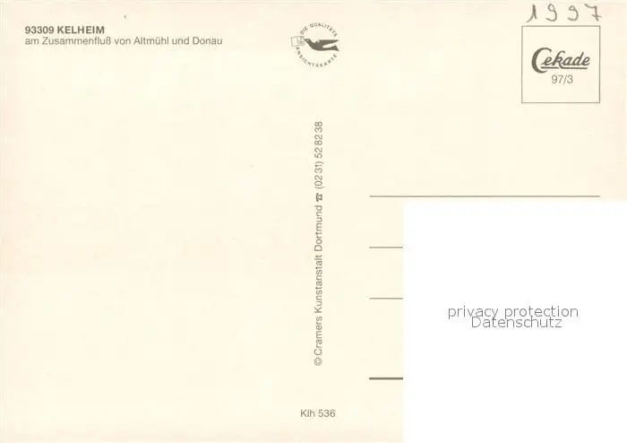 Kelheim Fliegeraufnahme Zusammenfluss von Altmuehl und Donau Kelheim postalisch nicht gelaufen 1997 Erhaltung siehe scans [WerneD78] WernPID7
