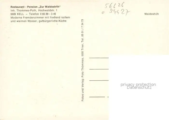 Kell_See Restaurant Pension Zur Waldeshoeh Kell_See postalisch nicht gelaufen nach 1965 Erhaltung siehe scans [FriedD77] Frierer