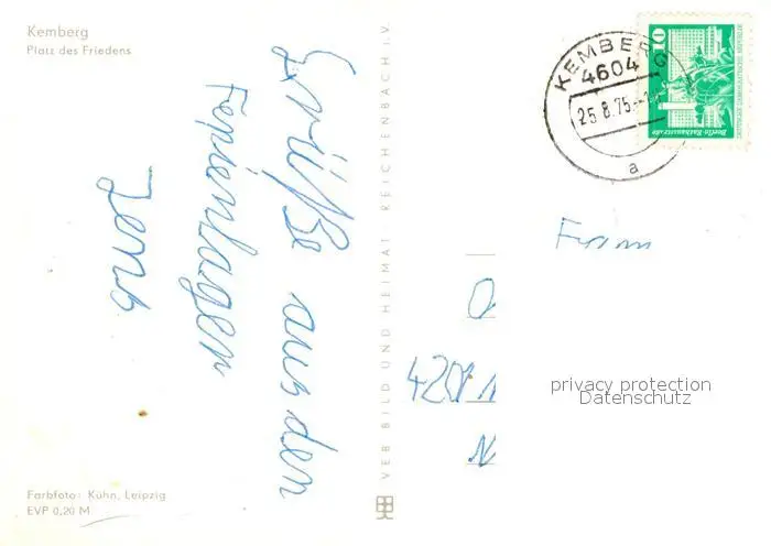 Kemberg Platz des Friedens Kirche Kemberg postalisch gelaufen 1975 Erhaltung siehe scans [FriedD77] Frierer