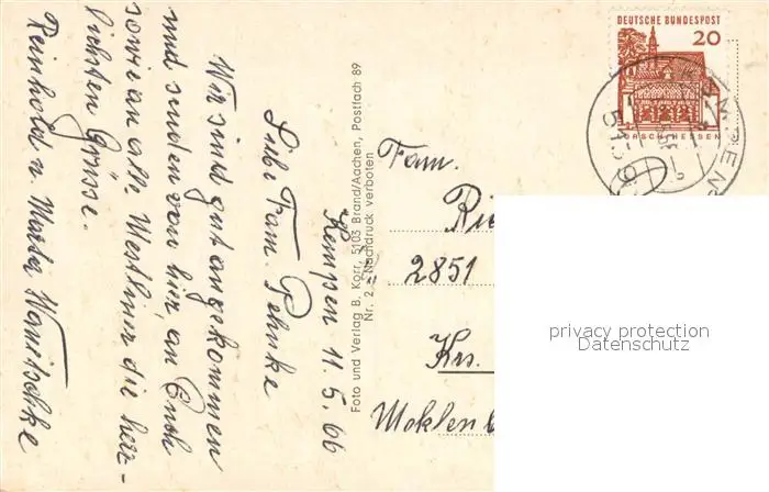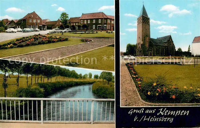Kempen Niederrhein Kategorie Alte Ansichtskarten Postkarten bx94129 Kempen_Niederrhein Ortsmotiv Kirche Partie am Fluss Kempen Niederrhein postalisch gelaufen 1966 Erhaltung siehe scans [FriedD77]