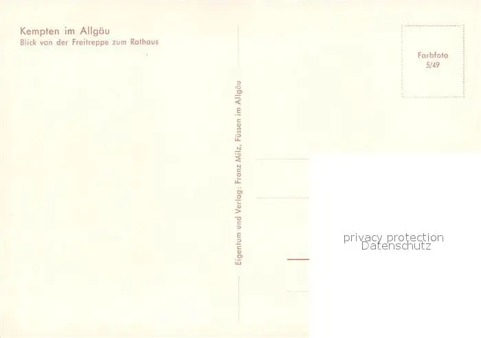 Kempten_Allgaeu Blick von der Freitreppe zum Rathaus Kempten Allgaeu postalisch nicht gelaufen 1921-1965 Erhaltung siehe scans [FriedD77] Frierer