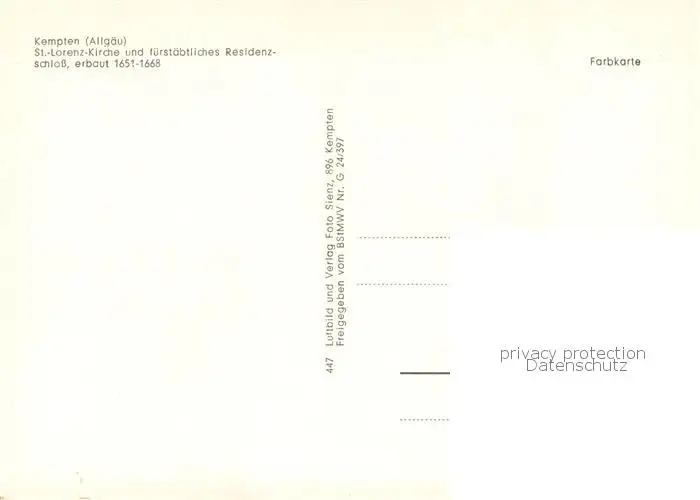 Kempten_Allgaeu Fliegeraufnahme St-Lorenz-Kirche u. fuerstl. Residenzschloss Kempten Allgaeu postalisch nicht gelaufen nach 1965 Erhaltung siehe scans [LiesaD40] LiesID40