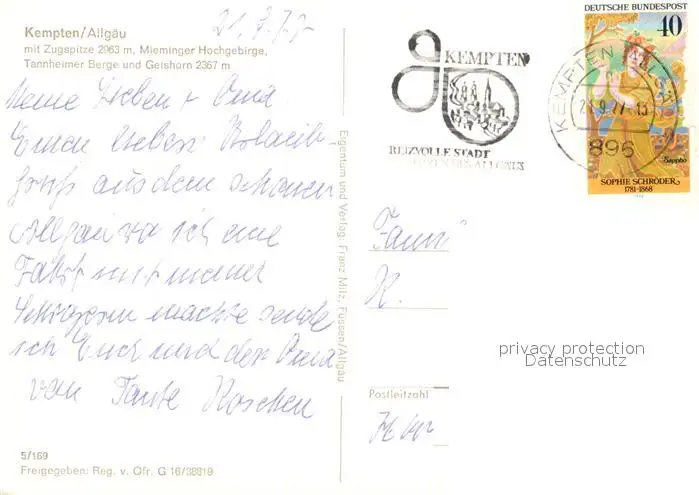 Kempten_Allgaeu Fliegeraufnahme mit Zugspitze Kempten Allgaeu postalisch gelaufen 1977 Erhaltung siehe scans [WerneD78] WernPID7