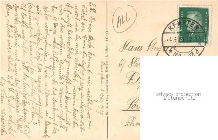 Kempten_Allgaeu Gesamtansicht mit Alpenpanorama Kempten Allgaeu postalisch gelaufen 1929 Erhaltung siehe scans [FriedD77] Frierer