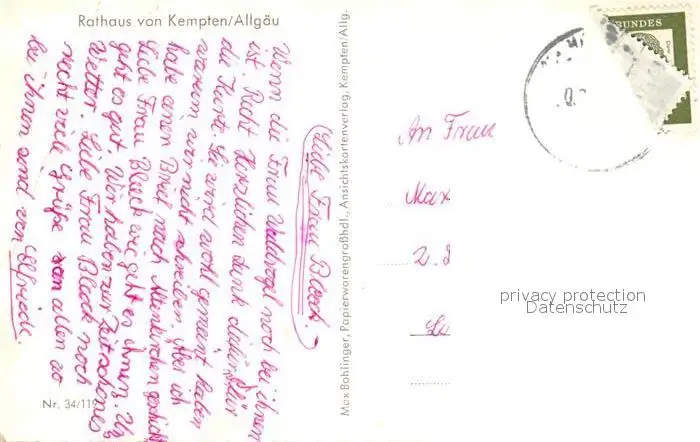 Kempten_Allgaeu Rathaus Kempten Allgaeu postalisch nicht gelaufen 1962 Erhaltung siehe scans [WerneD78] WernPID7