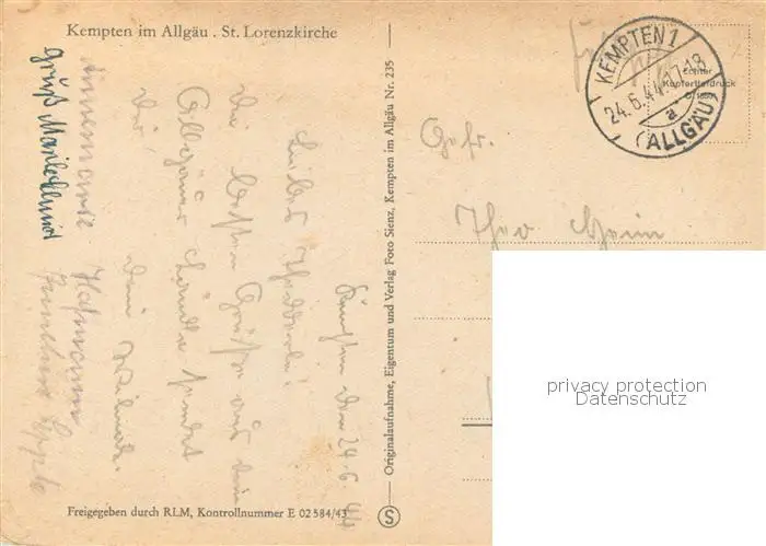 Kempten_Allgaeu St Lorenzkirche Kempten Allgaeu postalisch nicht gelaufen 1944 Erhaltung siehe scans [WerneD78] WernPID7