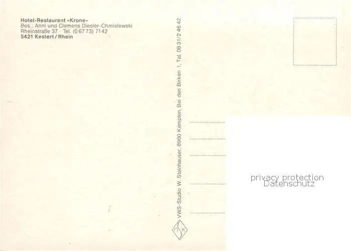 Kestert_Rhein Hotel Restaurant Krone Kestert_Rhein postalisch nicht gelaufen nach 1965 Erhaltung siehe scans [WerneD78] WernPID7