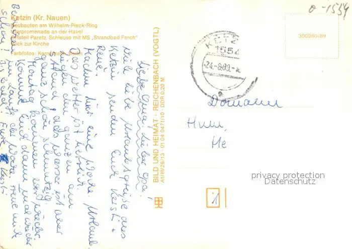 Ketzin Neubauten Wilhelm Pieck Ring Uferpromenade Havel OT Paretz Schleuse Fahrgastschiff Kirche Ketzin postalisch gelaufen 1989 Erhaltung siehe scans [FriedD77] Frierer