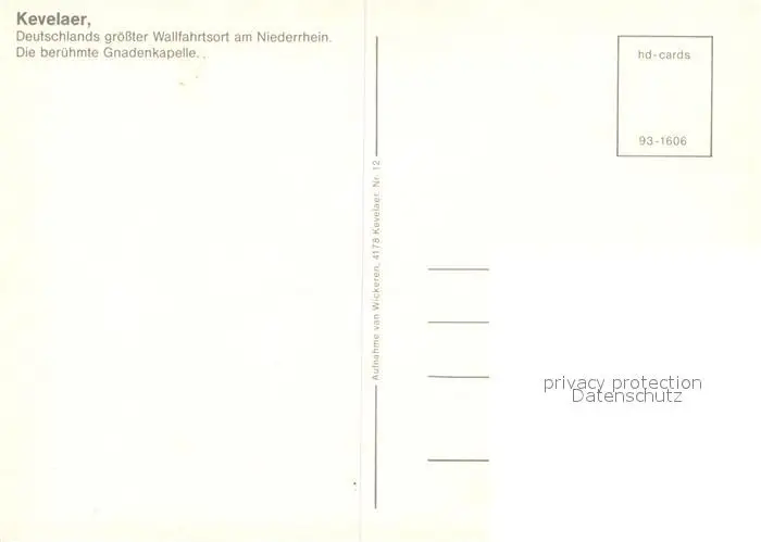 Kevelaer Gnadenkapelle Kevelaer postalisch nicht gelaufen nach 1965 Erhaltung siehe scans [KathaD81] Kathoren