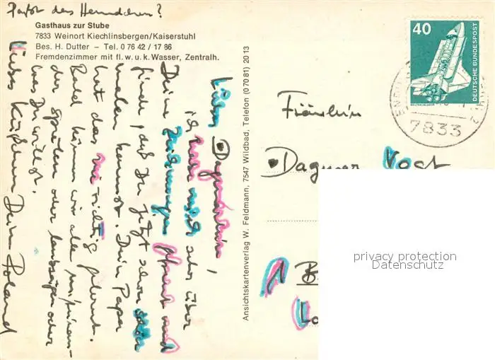 Kiechlinsbergen Gasthaus zur Stube Kiechlinsbergen postalisch gelaufen 1977 Erhaltung siehe scans [WerneD78] WernPID7