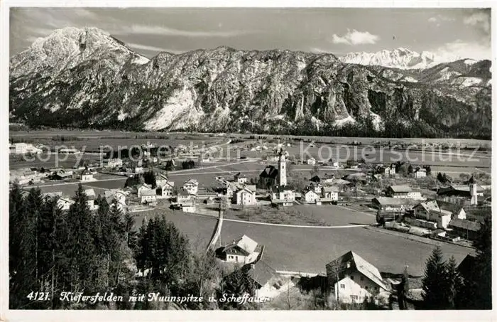 AK / Ansichtskarte Kiefersfelden Gesamtansicht mit Naunspitze und Scheffauer Alpenpanorama Kiefersfelden