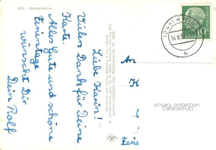 Kiel Olympiahafen Fliegeraufnahme Kiel postalisch gelaufen 1957 Erhaltung siehe scans [FriedD77] Frierer