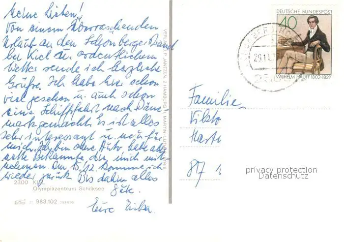 Kiel Olympiazentrum Schilksee Hafen Segelboote Kiel postalisch gelaufen 1977 Erhaltung siehe scans [FriedD77] Frierer