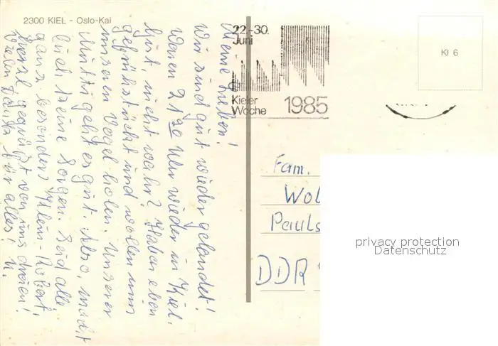 Kiel Oslo Kai mit Faehrschiffen Kiel postalisch gelaufen 1985 Erhaltung siehe scans [WerneD78] WernPID7
