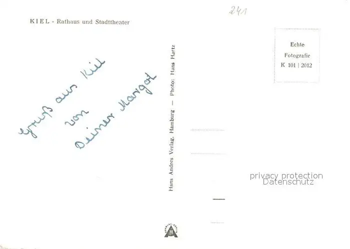 Kiel Rathaus und Stadttheater Kiel postalisch nicht gelaufen 1921-1965 Erhaltung siehe scans [FriedD77] Frierer