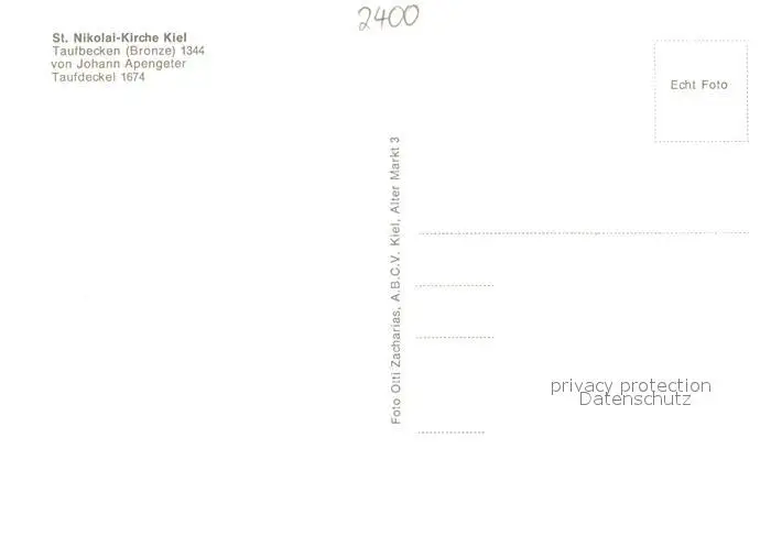 Kiel St.Nikolai-Kirche Taufbecken Taufdeckel Kiel postalisch nicht gelaufen 1921-1965 Erhaltung siehe scans [LiesaD40] LiesID40
