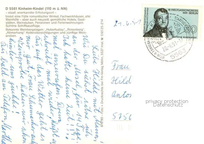 Kindel Moselpartie Fachwerkhaeuser Wassertretanlage Kindel postalisch gelaufen 1991 Erhaltung siehe scans [FriedD77] Frierer