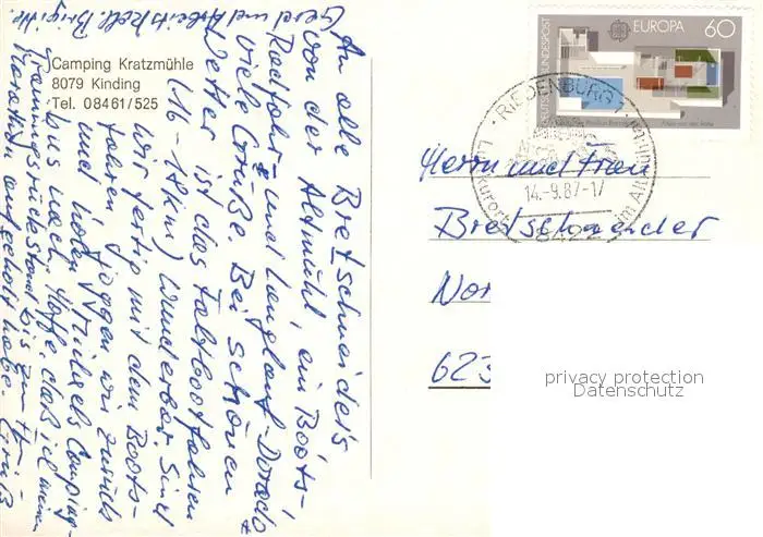Kinding Camping Kratzmuehle See Fliegeraufnahme Kinding postalisch gelaufen 1987 Erhaltung siehe scans [FriedD77] Frierer