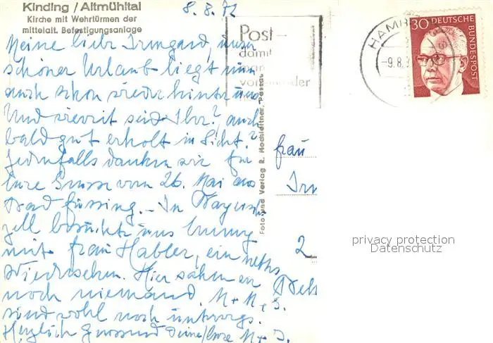 Kinding Kategorie Alte Ansichtskarten Postkarten bx59744 Kinding Kirche mit Wehrtuermen der mittelalterlichen Befestigungsanlage Kinding postalisch gelaufen 1972 Erhaltung siehe scans [WerneD78]
