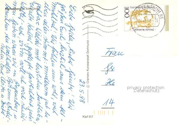 Kipfenberg_Altmuehltal Altstadt Gasse Blick zur Burg Kipfenberg Altmuehltal postalisch gelaufen 1998 Erhaltung siehe scans [FriedD77] Frierer