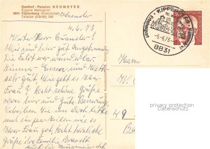 Kipfenberg_Altmuehltal Gasthof Pension Neumeyer Blick zur Kirche Kipfenberg Altmuehltal postalisch gelaufen 1973 Erhaltung siehe scans [FriedD77] Frierer