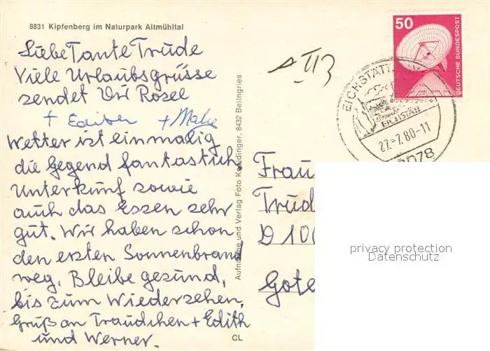 Kipfenberg_Altmuehltal Panorama im Naturpark Altmuehltal Kipfenberg Altmuehltal postalisch gelaufen 1980 Erhaltung siehe scans [FriedD77] Frierer