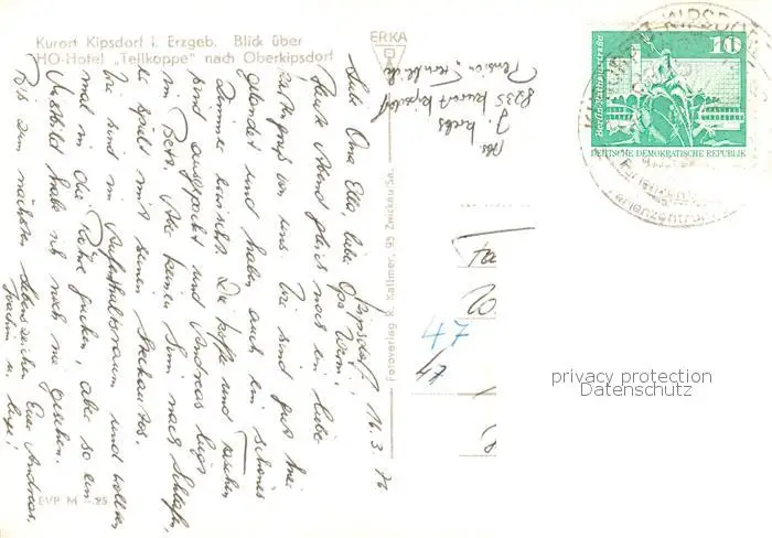 Kipsdorf Blick ueber HO Hotel Tellkoppe nach Oberkipsdorf im Winter Kipsdorf postalisch gelaufen 1973 Erhaltung siehe scans [FriedD77] Frierer