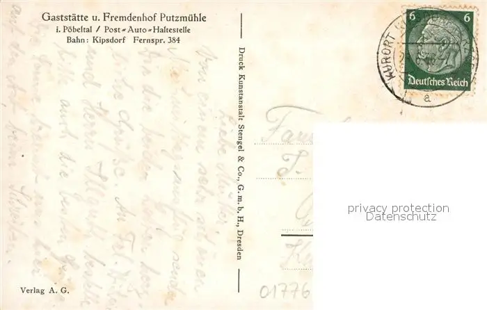 Kipsdorf Gaststaette Putzmuehle Kipsdorf postalisch gelaufen 1921-1965 Erhaltung siehe scans [DarjaD83] DarjID83
