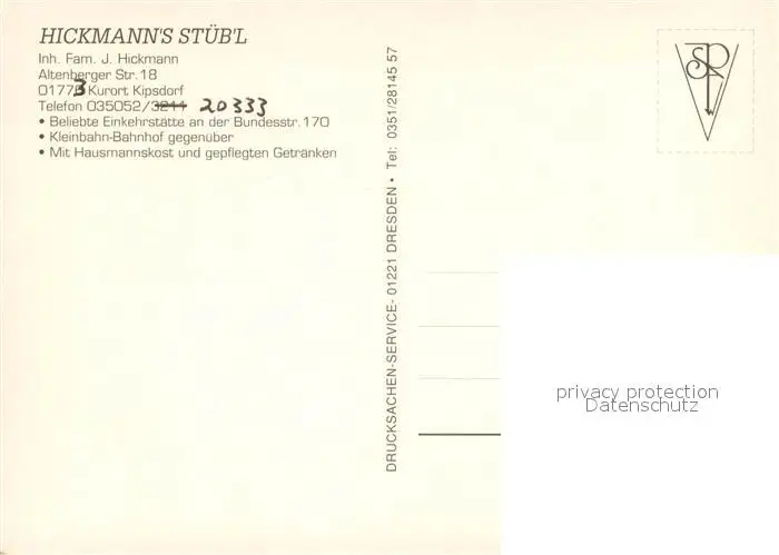 Kipsdorf Hickmann's Stueb'l Gaststube Eisenbahn Dampflokomotive Kipsdorf postalisch nicht gelaufen nach 1965 Erhaltung siehe scans [FriedD77] Frierer