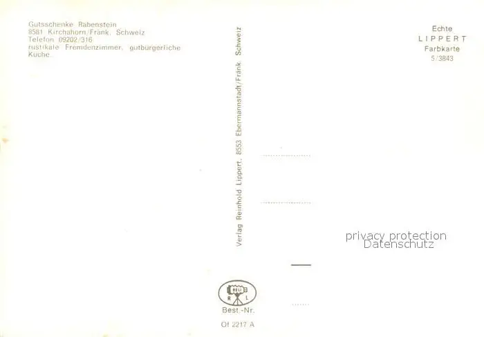 Kirchahorn Gutsschenke Rabenstein Kirchahorn postalisch nicht gelaufen nach 1965 Erhaltung siehe scans [WerneD78] WernPID7