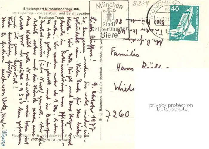 Kirchanschoering Kategorie Alte Ansichtskarten Postkarten bx93159 Kirchanschoering im Rupertigau Fliegeraufnahme mit Kaufhaus Traub Kirchanschoering postalisch gelaufen 1977 Erhaltung siehe scans [WerneD78]