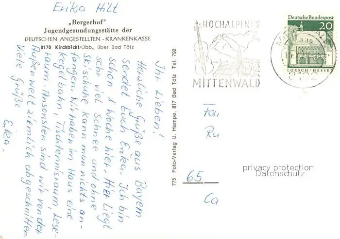 Kirchbichl_Bad_Toelz Kategorie Alte Ansichtskarten Postkarten bx57038 Kirchbichl_Bad_Toelz Bergerhof Jugendbildungsstaette der DAK Kirchbichl_Bad_Toelz postalisch gelaufen nach 1965 Erhaltung siehe scans [WerneD78]