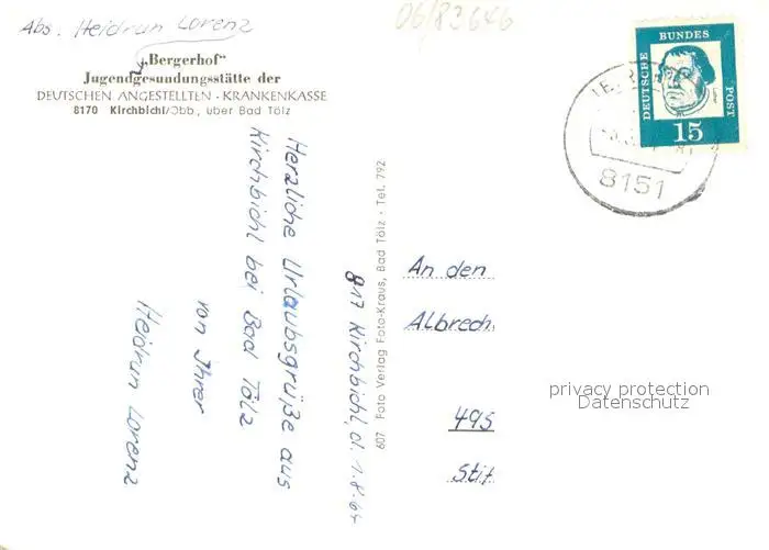 Kirchbichl_Bad_Toelz Bergerhof Jugendgesundungsstaette der DAK Kirchbichl_Bad_Toelz postalisch gelaufen 1964 Erhaltung siehe scans [FriedD77] Frierer