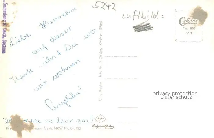 Kirchen_Sieg Fliegeraufnahme Kirchen Sieg postalisch nicht gelaufen 1921-1965 Erhaltung siehe scans [LiesaD40] LiesID40