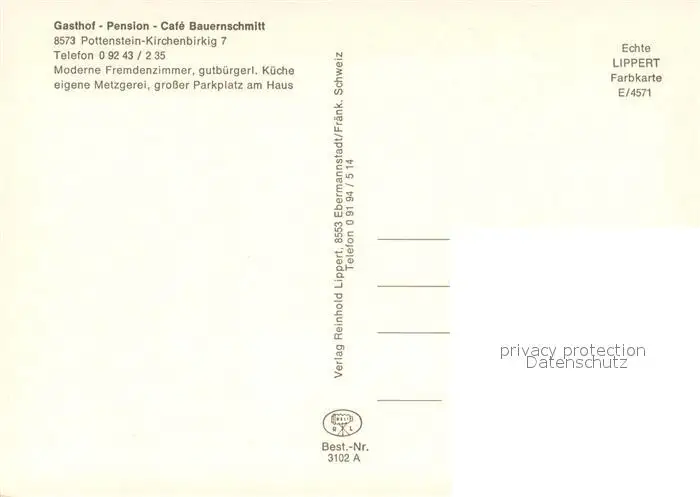 Kirchenbirkig Gasthof Pension Café Bauernschmitt Kirchenbirkig postalisch nicht gelaufen nach 1965 Erhaltung siehe scans [FriedD77] Frierer