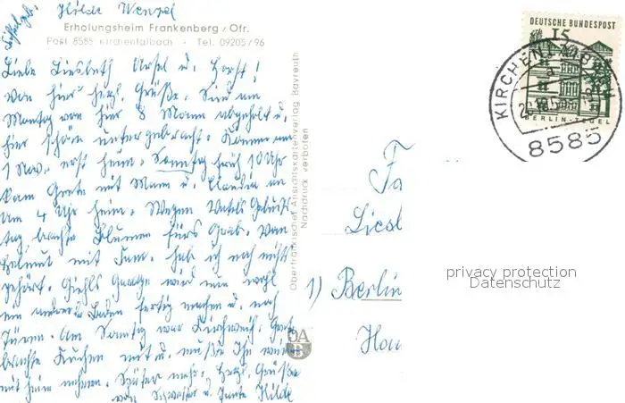 Kirchenlaibach Erholungsheim Frankenberg Kirchenlaibach postalisch gelaufen 1965 Erhaltung siehe scans [WerneD78] WernPID7